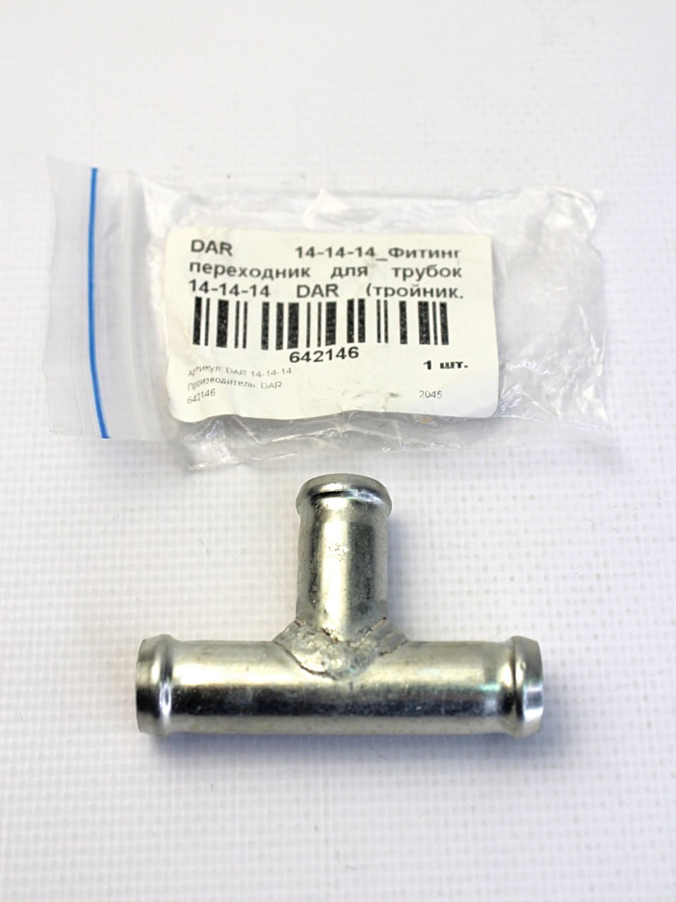 DAR141414 DAR - Фитинг переходник для трубок 14-14-14 (тройник, металл, угол 90) - металл, 60х40х14мм, 50 грамм
