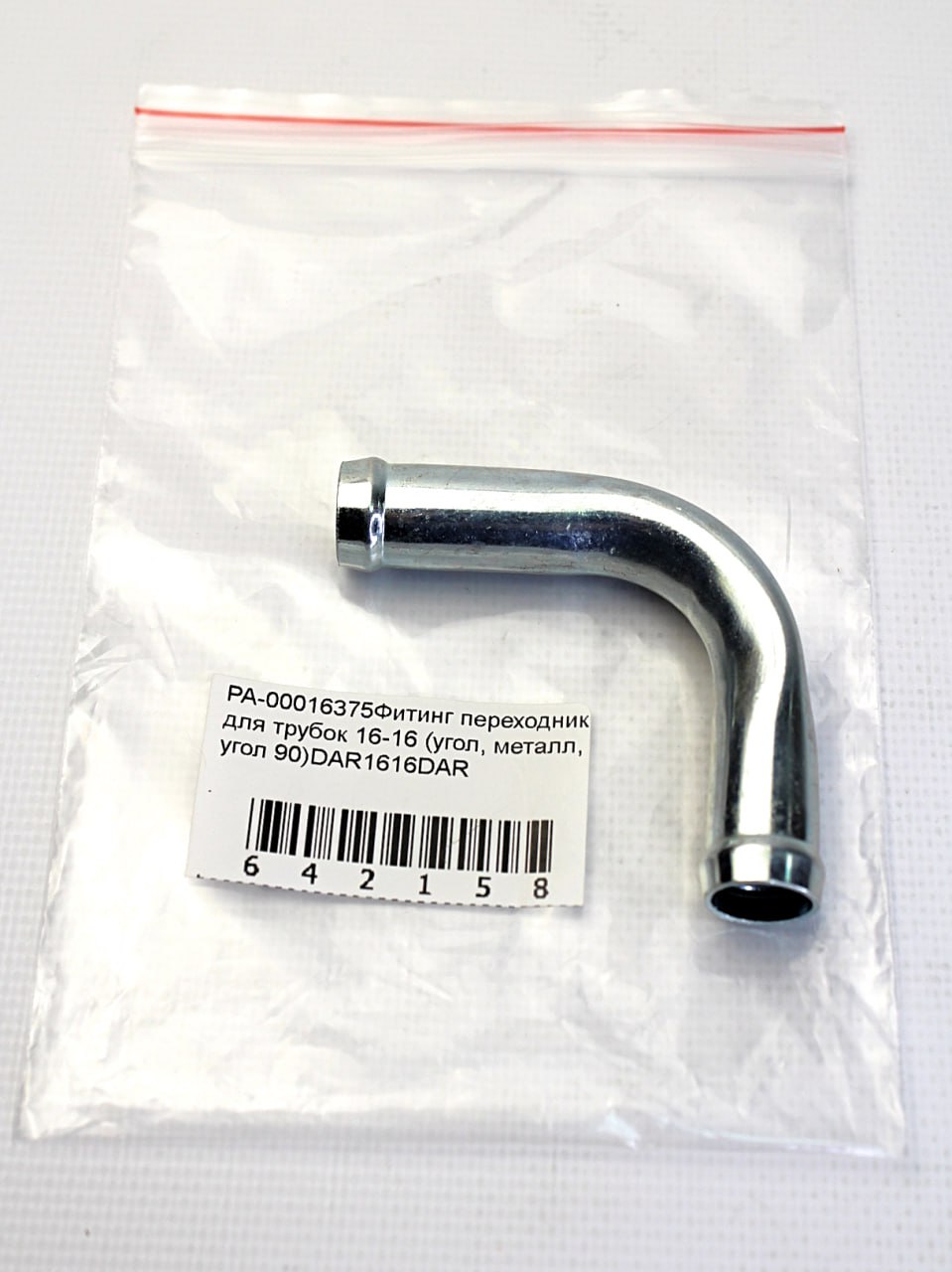 DAR1616 DAR - Фитинг переходник для трубок 16-16 (угол, металл, угол 90)- металл, 97х65х16мм, 45 грамм