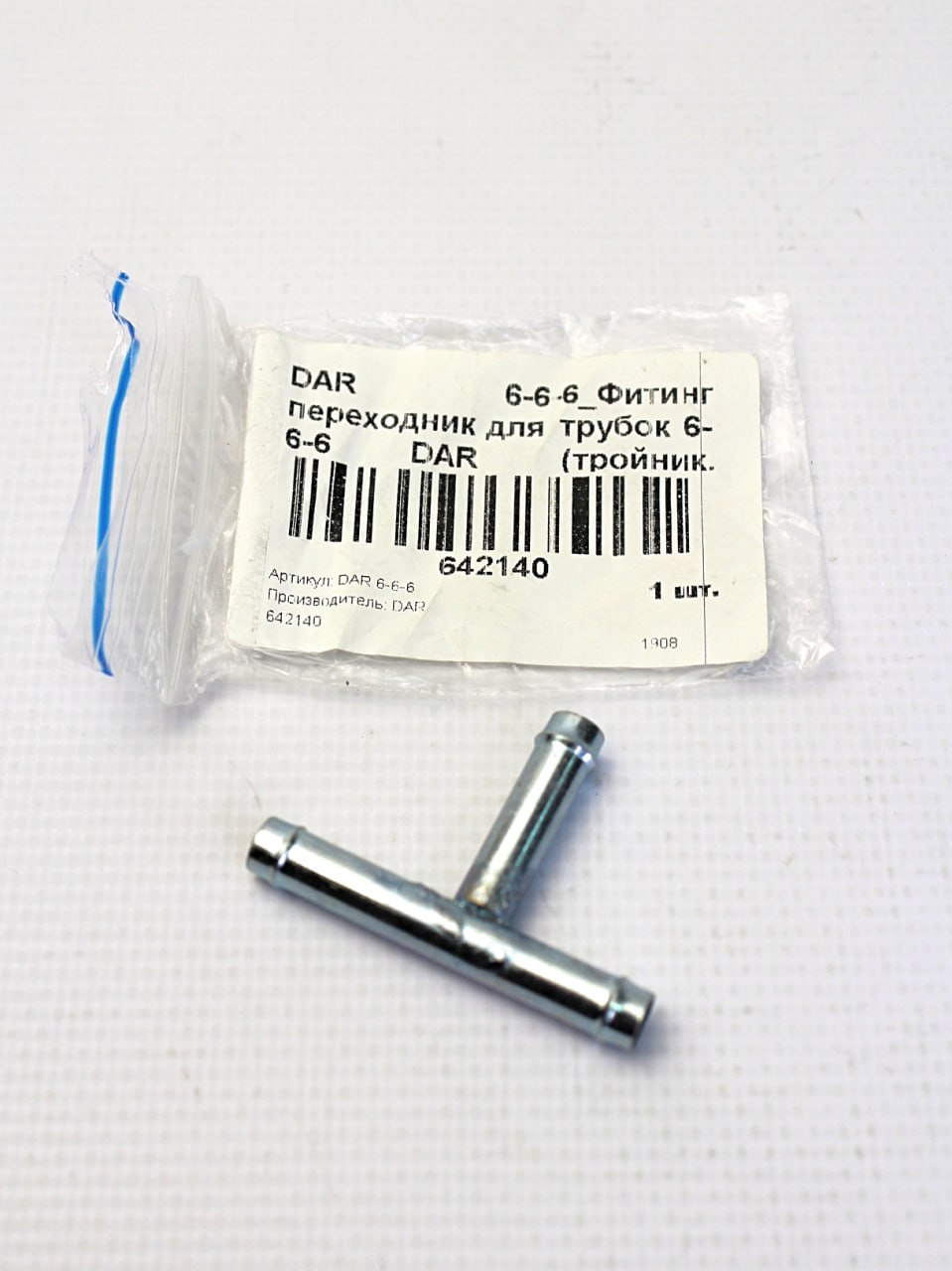DAR666 DAR - Фитинг переходник для трубок 6-6-6 (тройник, металл, угол 90) - металл, 42х29х6мм, 10 грамм