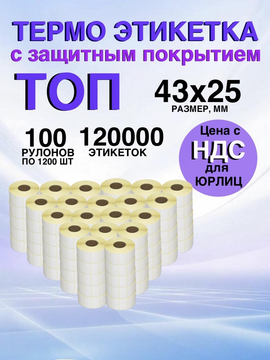Самоклеящиеся термоэтикетки ТОП 43x25мм 100рулонов по 1200шт