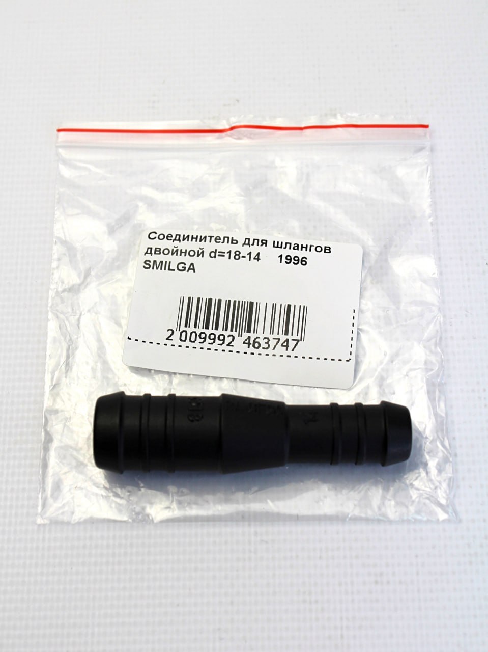 1996 SMILGA - Соединитель для шлангов двойной d=18-14 - пластик, 74х18х18мм, 25 грамм