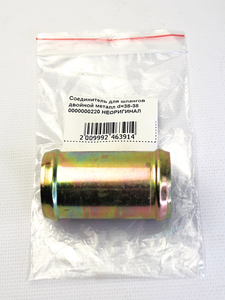0000000220 НЕОРИГИНАЛ - Соединитель для шлангов двойной металл d=38-38 - металл, 69х38х38мм, 90 грамм