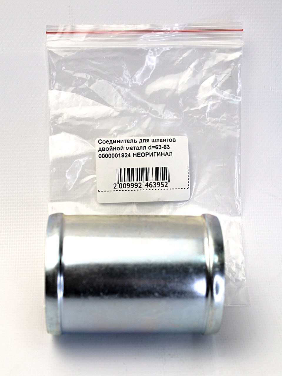 0000001924 НЕОРИГИНАЛ - Соединитель для шлангов двойной металл d=63-63 - металл, 90х63х63мм, 210 грамм