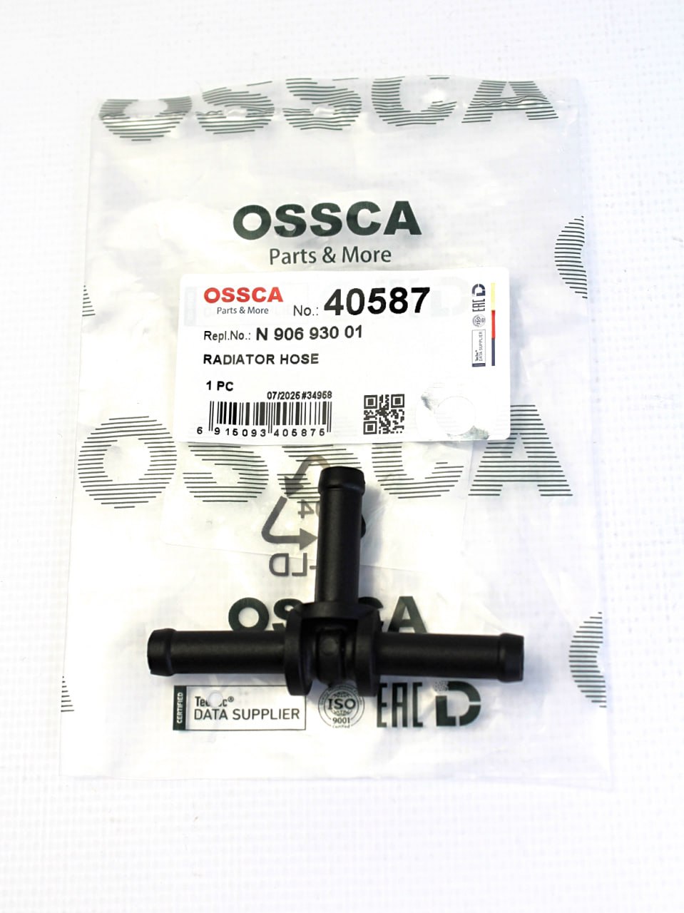 40587 OSSCA - Тройник пластмассовый системы охлаждения - пластик, 68х42х16мм, 15 грамм